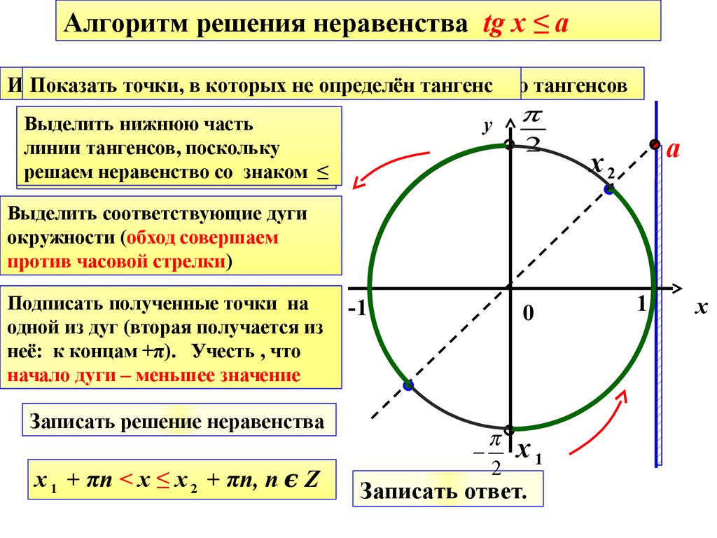 Алгоритм решения неравенства tg x ≤ aИзобразить