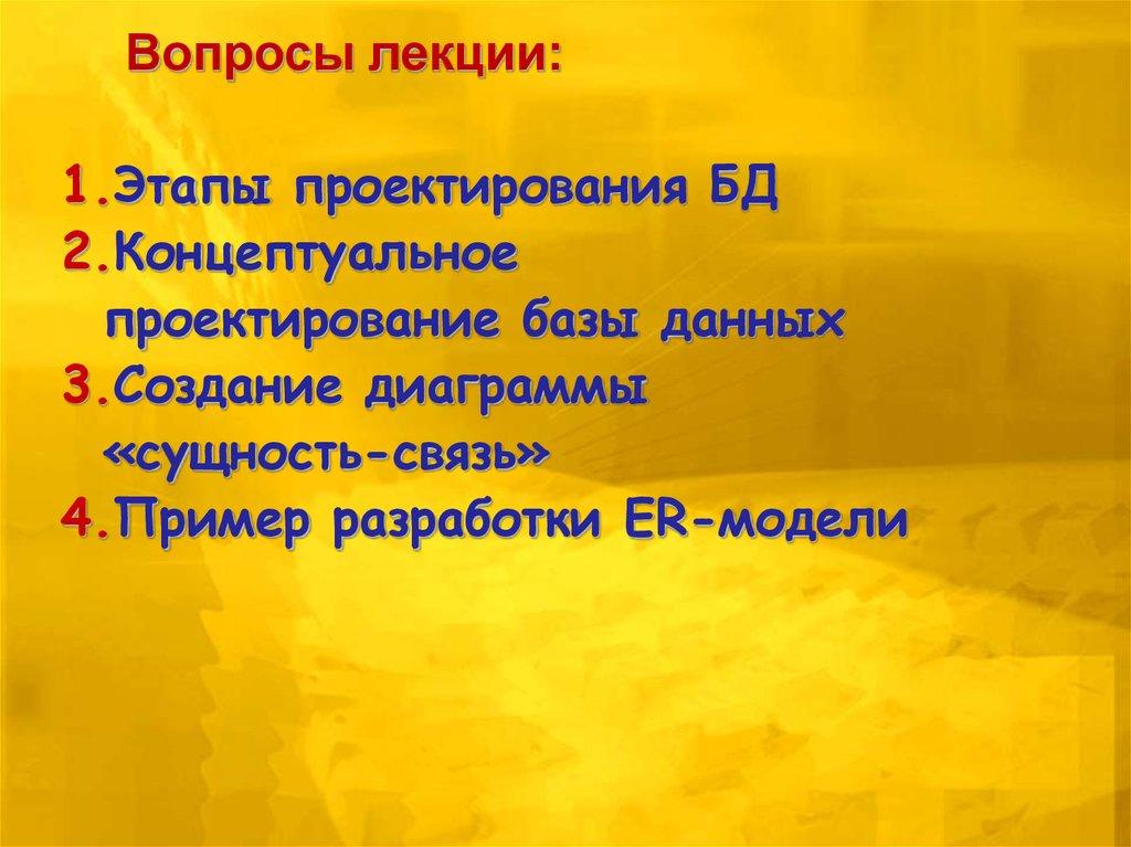 Вопросы лекции:1.Этапы проектирования БД