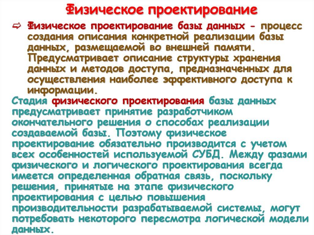 Физическое проектирование – проектирование