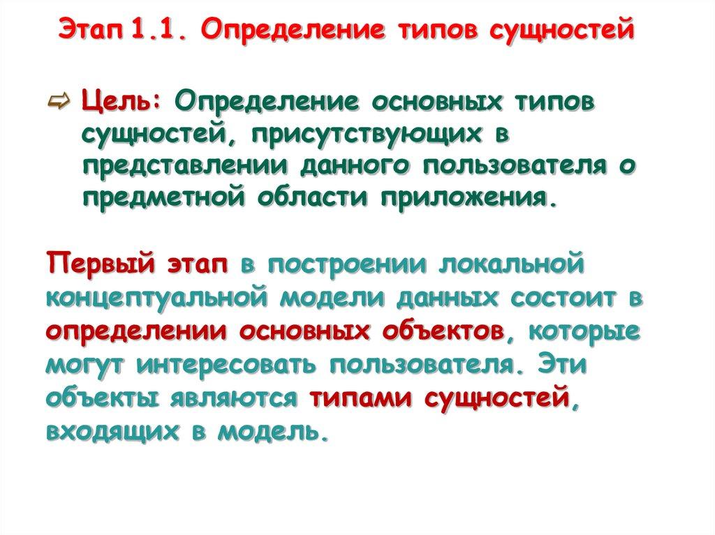 реляционной СУБД); Конечная цель – описание