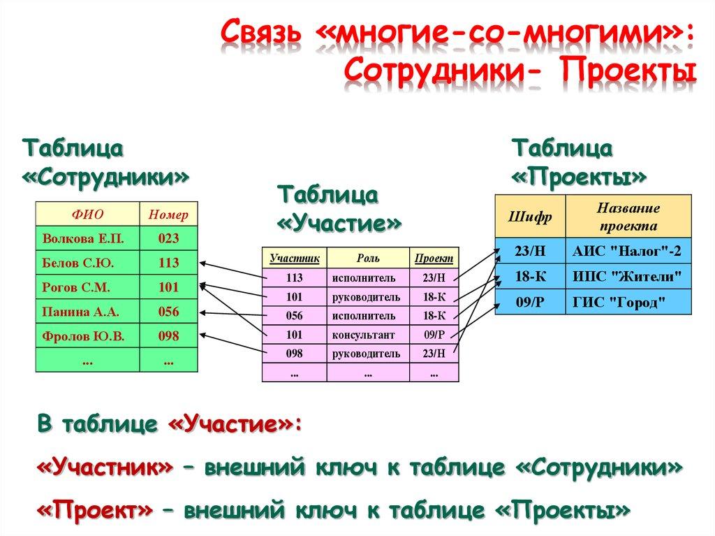 таблицами посредством внешних ключей.