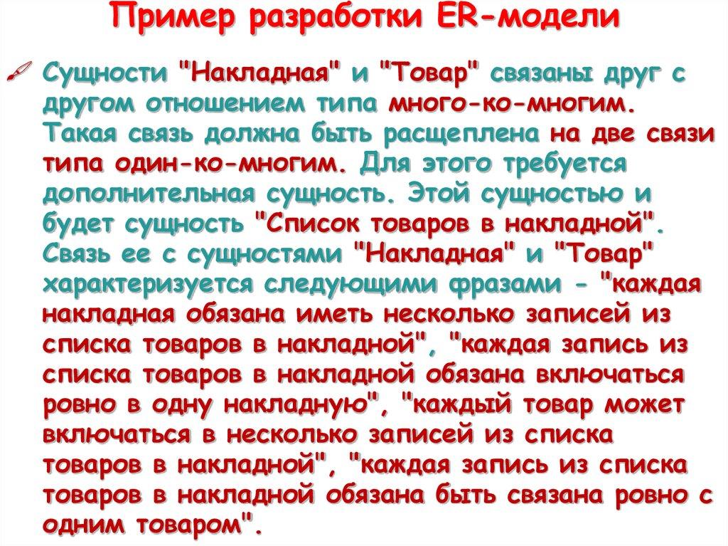 Пример разработки ER-моделиСущности "Накладная" и "Товар" связаны друг с