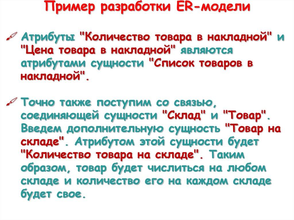 Пример разработки ER-моделиАтрибуты "Количество товара в накладной" и