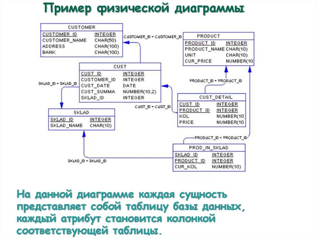 Пример физической диаграммыНа данной диаграмме каждая сущность