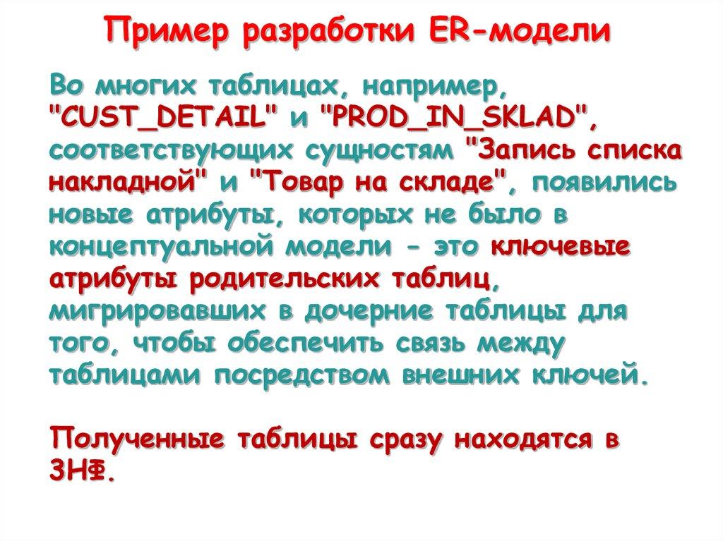 Пример разработки ER-моделиВо многих таблицах, например,