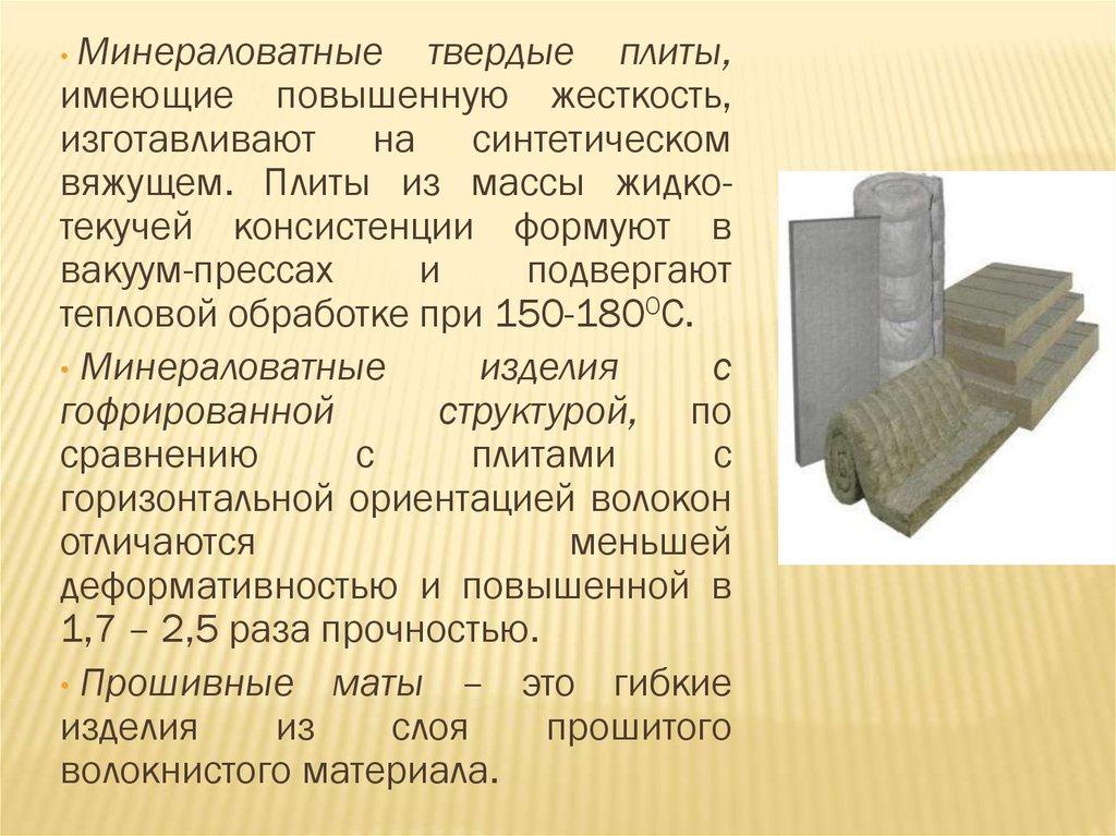 Минераловатные твердые плиты,имеющие повышенную жесткость,