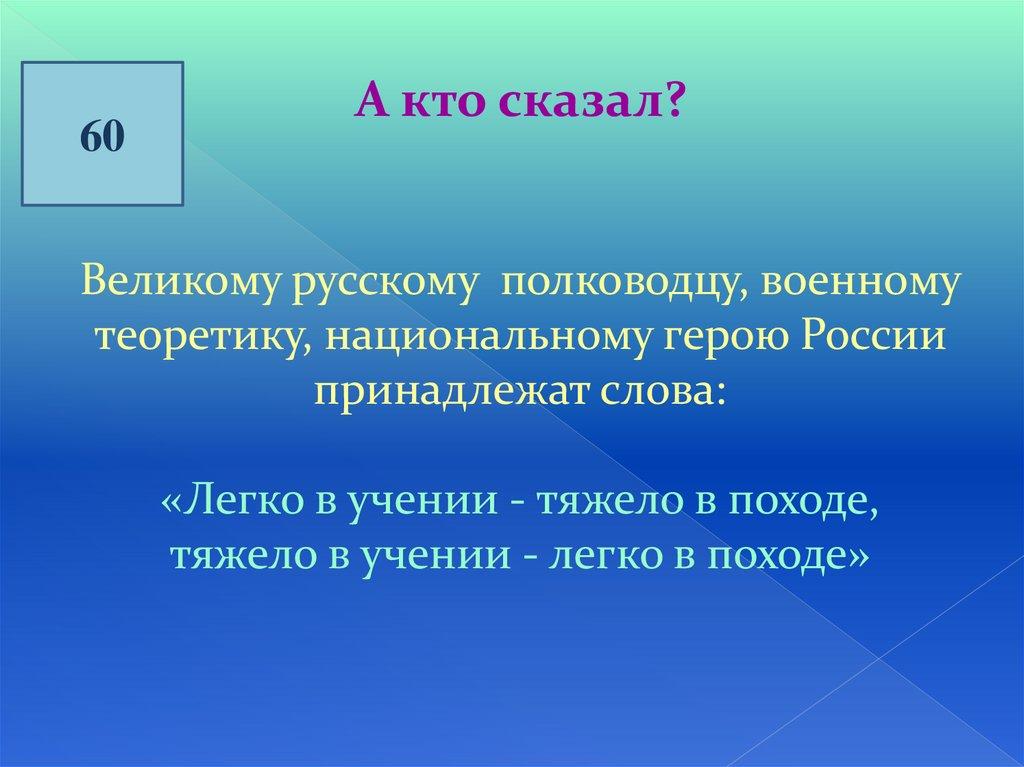 тяжело в учении - легко в походе»