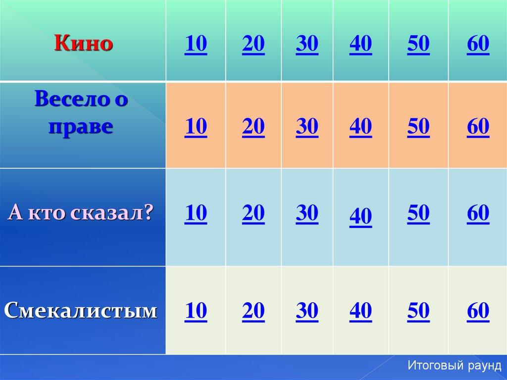 Викторина. Своя игра