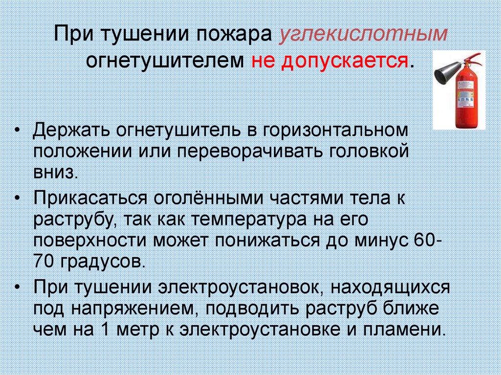 При тушении пожара углекислотнымогнетушителем не допускается.