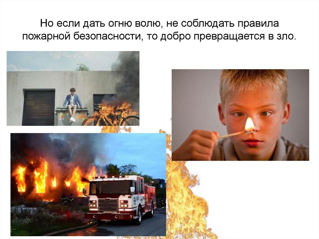 Но если дать огню волю, не соблюдать правилапожарной безопасности, то добро превращается в зло.