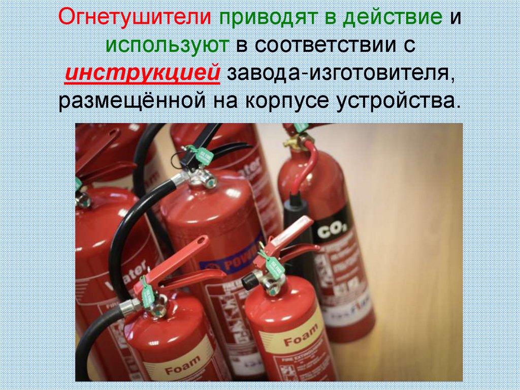 Огнетушители приводят в действие ииспользуют в соответствии с