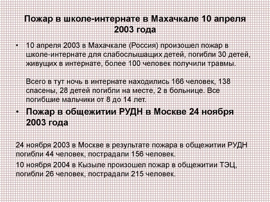 Пожар в школе-интернате в Махачкале 10 апреля2003 года