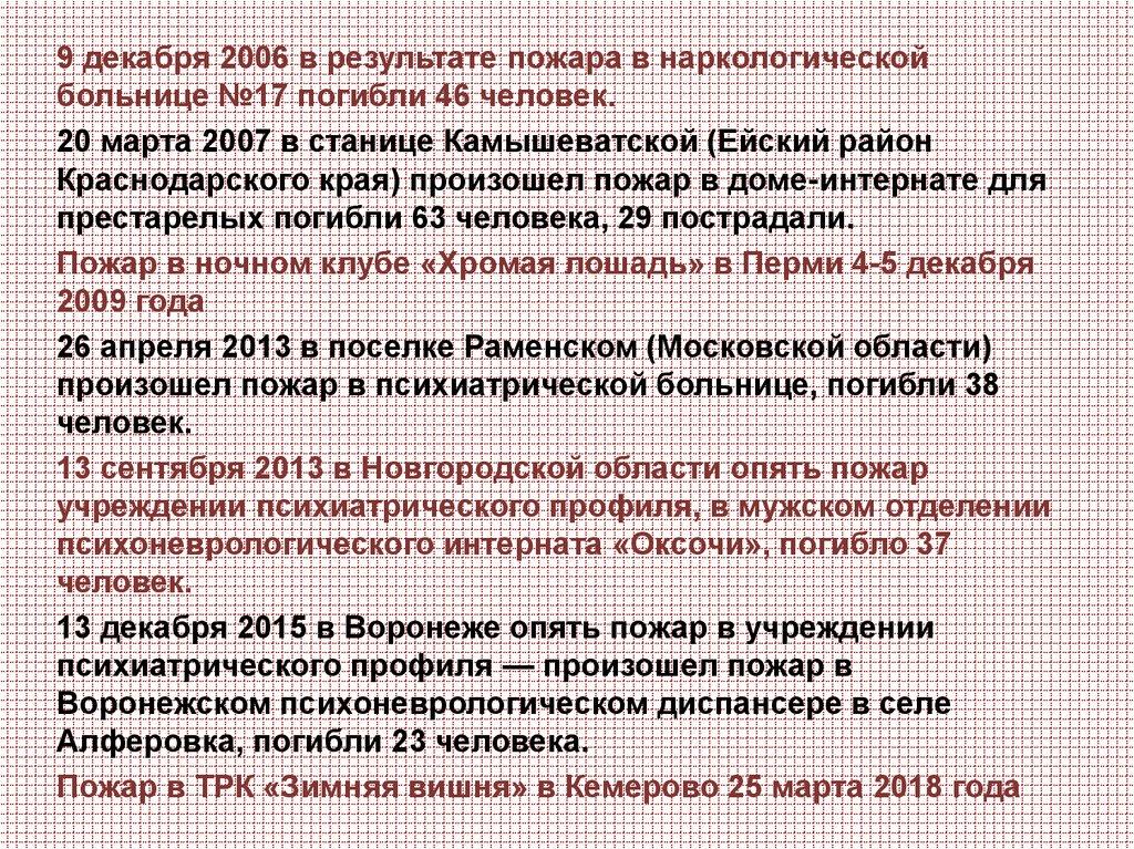 9 декабря 2006 в результате пожара в наркологическойбольнице №17 погибли 46 человек.