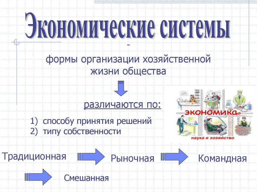 7. Традиционная система – способ организации экономической жизни, при которой земля и капитал находятся в общем владении, а