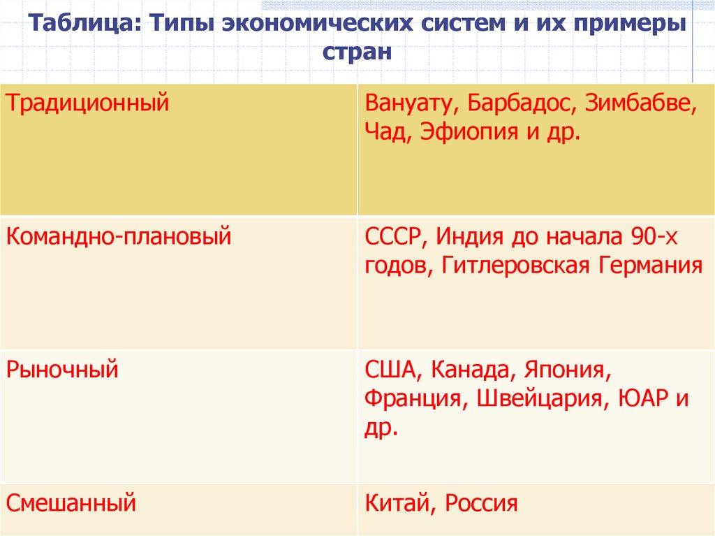 46. Таблица. «Как отвечают традиционная, командная (плановая) и рыночная экономика на главные вопросы экономики?»