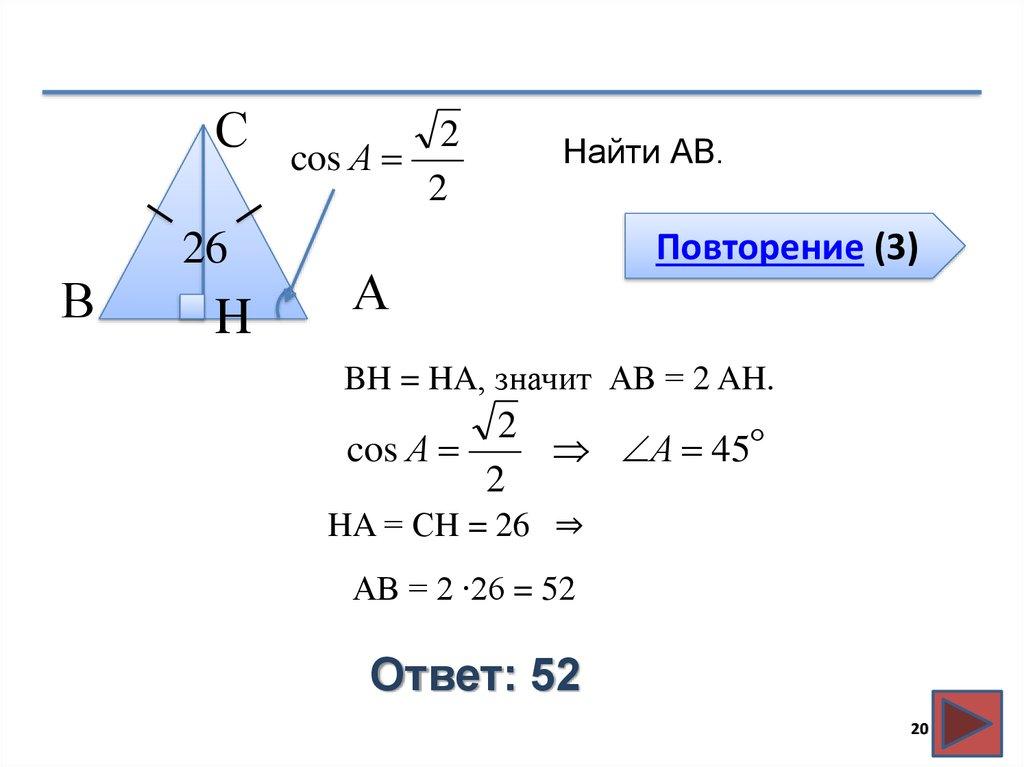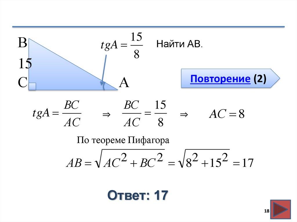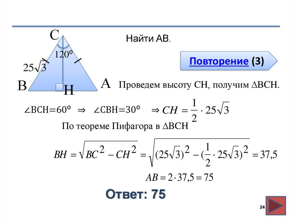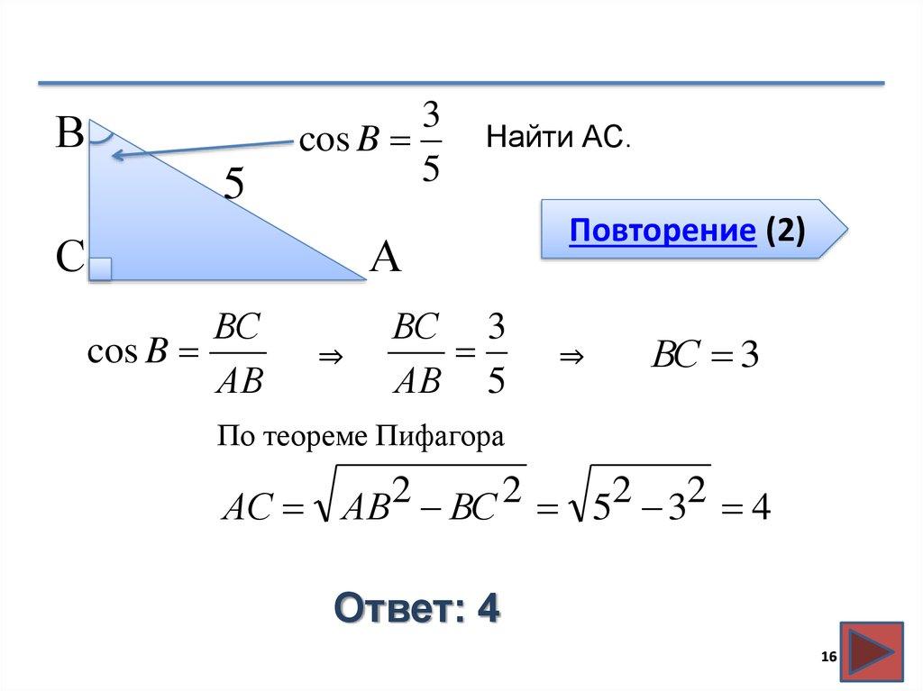 пересечения с лучом ВС, чтобы в катетах треугольника АВС