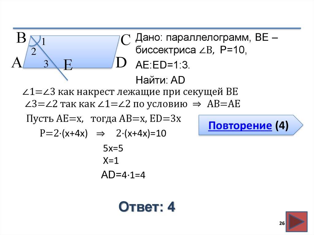 Параллелограмм – это четырехугольник, укоторого противоположные стороны