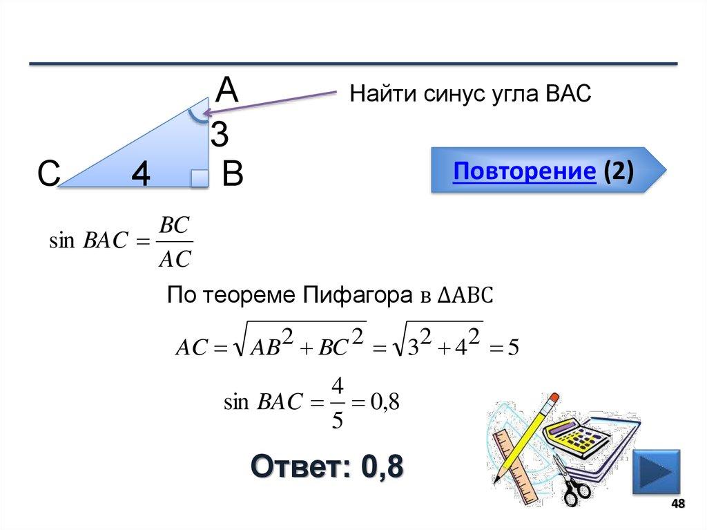 Синусом острого угла прямоугольноготреугольника называется отношение