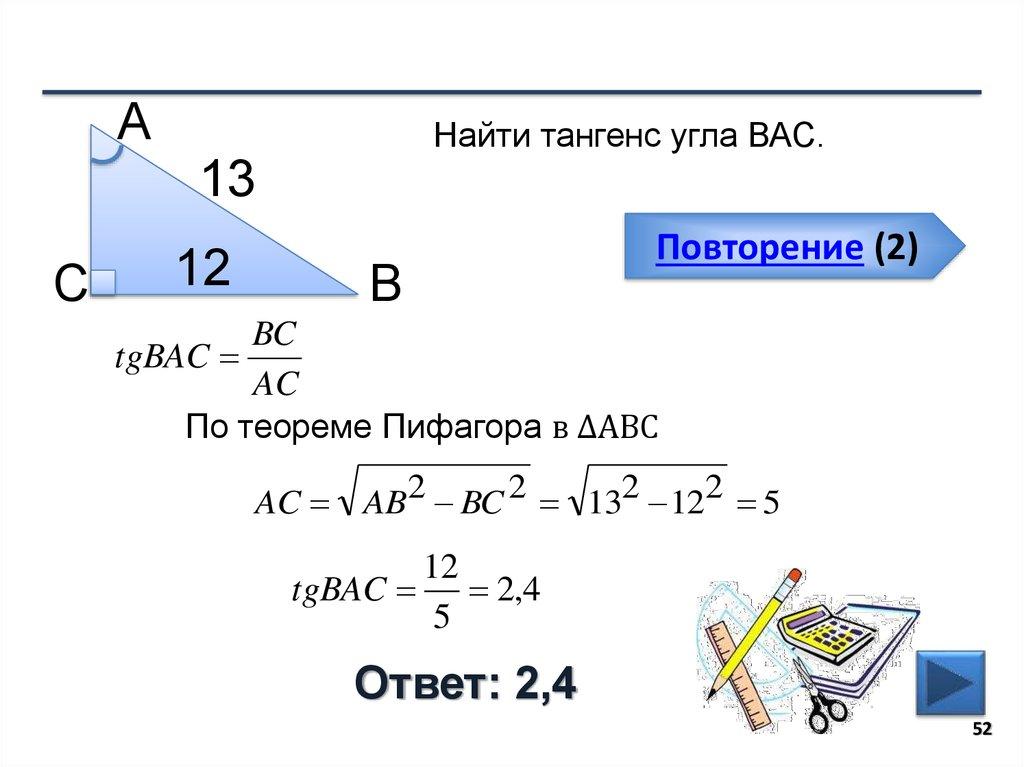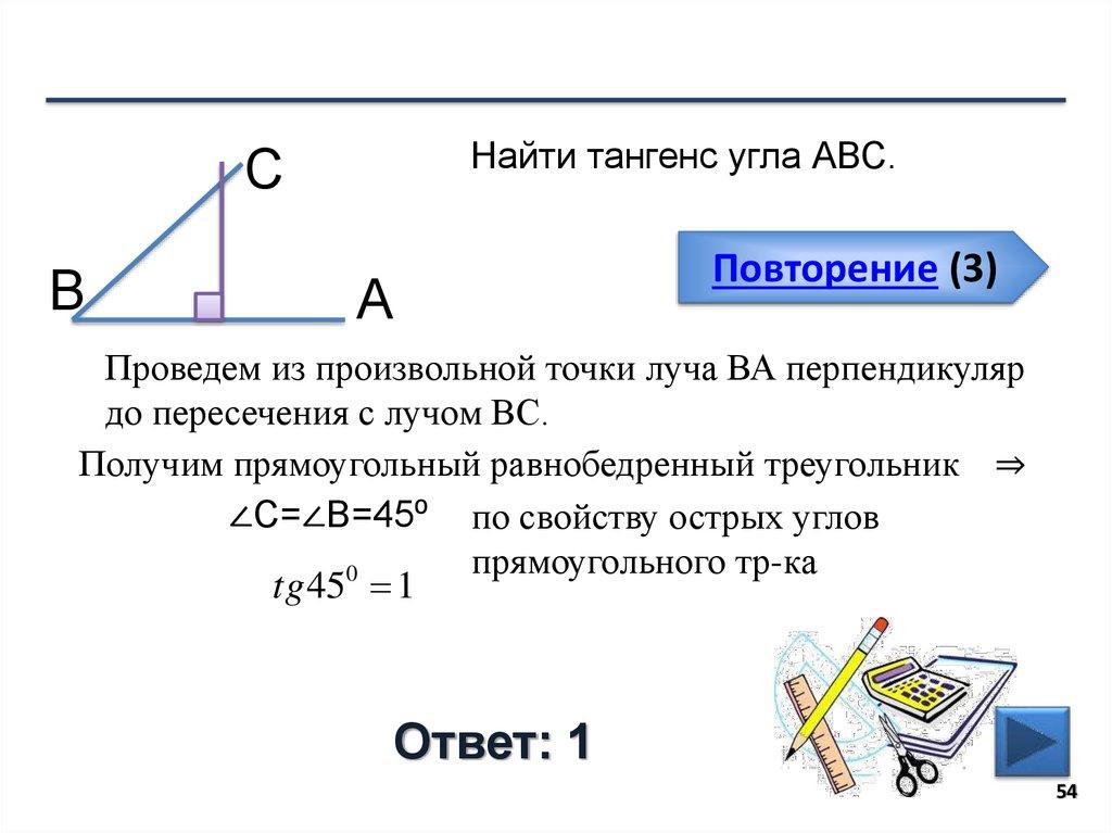 Тангенсом острого угла прямоугольноготреугольника называется отношение