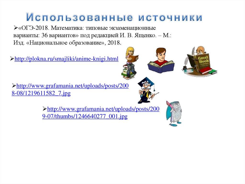 «ОГЭ-2018. Математика: типовые экзаменационныеварианты: 36 вариантов» под редакцией И. В. Ященко. – М.: