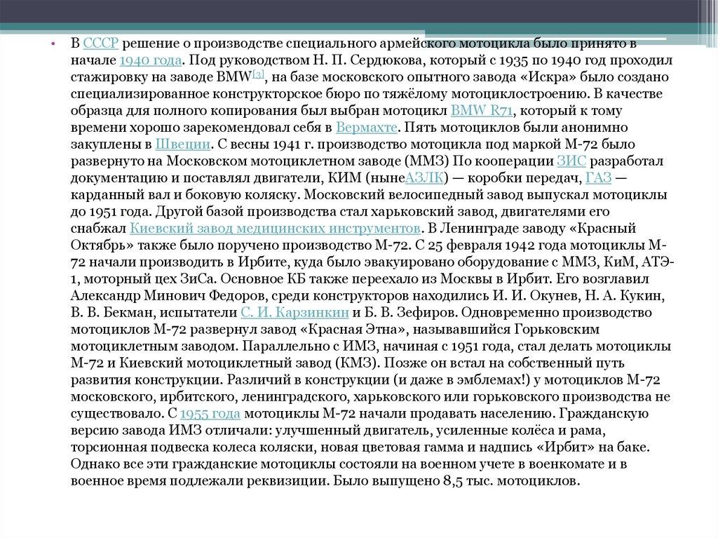 закуплены в Швеции. С весны 1941 г. производство мотоцикла под маркой М-72 было
