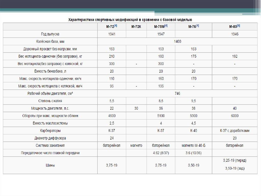 • М-76 - спортивный мотоцикл-одиночка на базе дорожного М-72. Двигатель и коробка передач