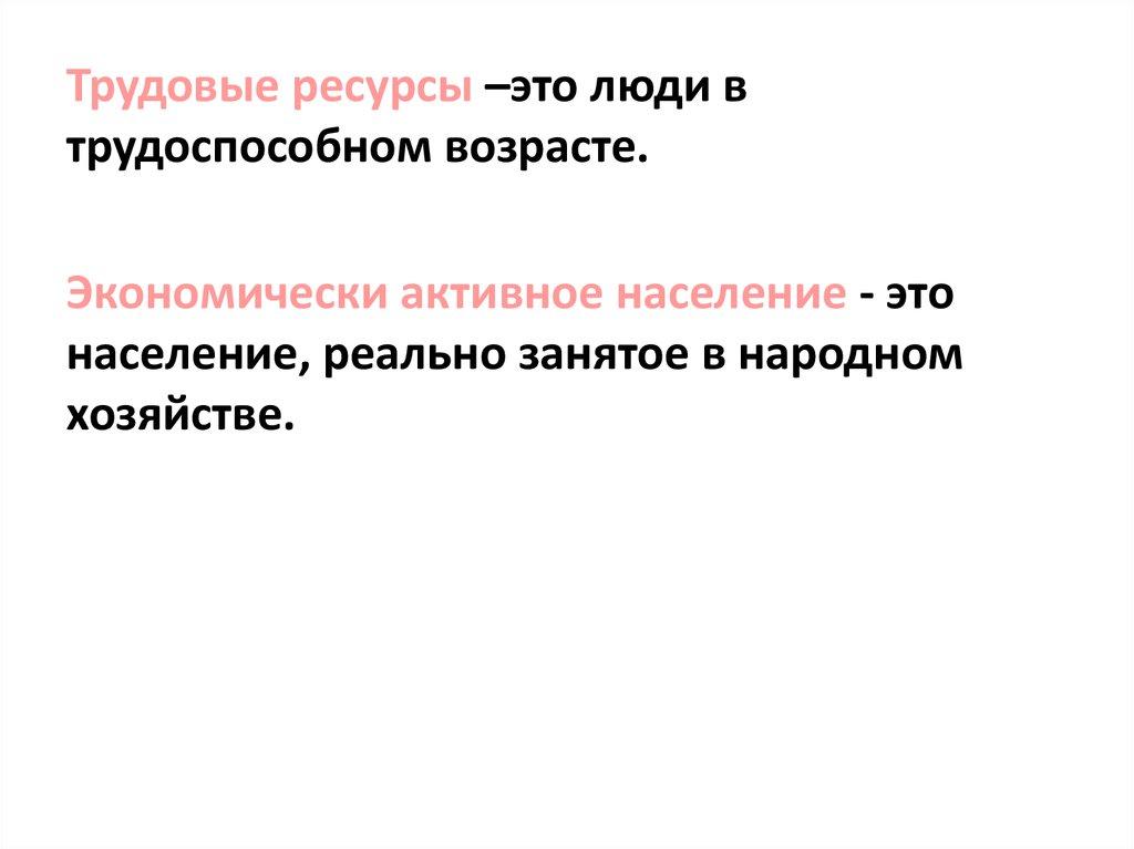 Трудовые ресурсы –это люди втрудоспособном возрасте.