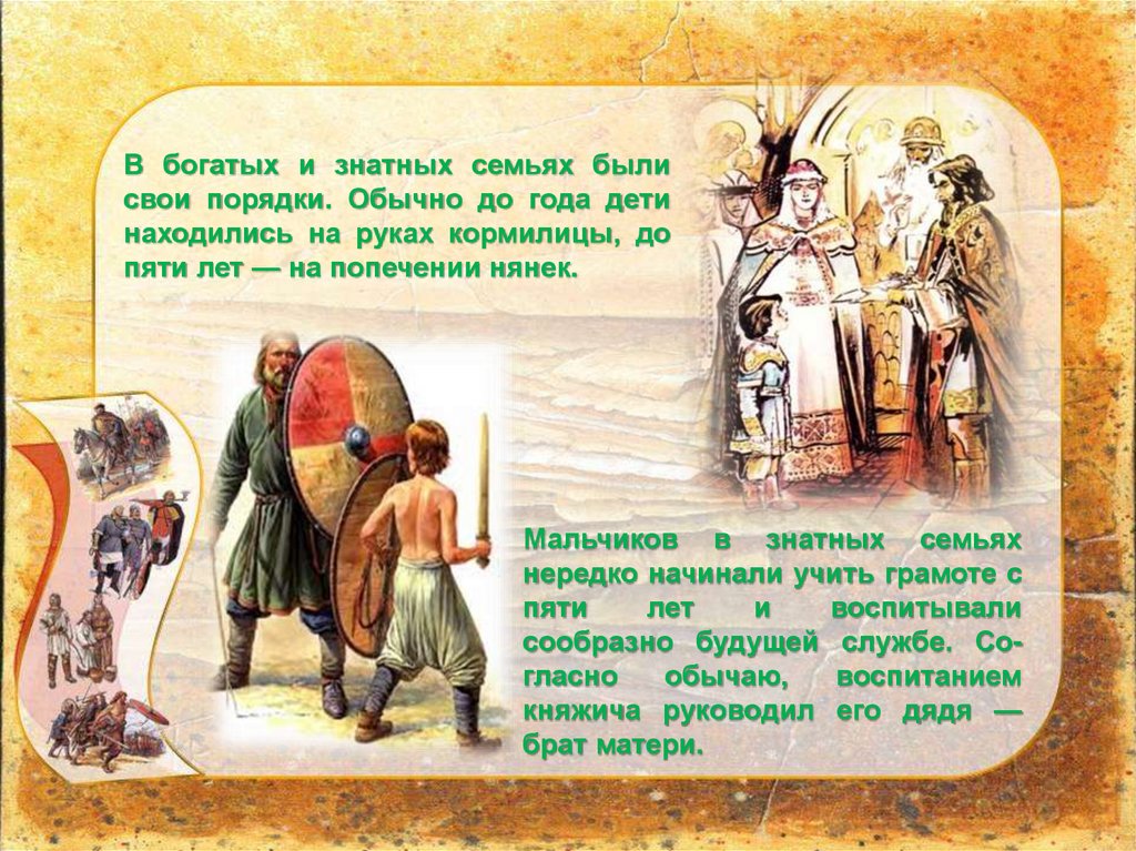 В богатых и знатных семьях былисвои порядки. Обычно до года дети