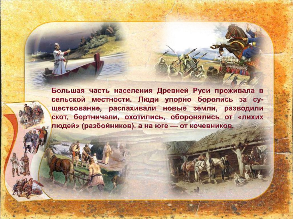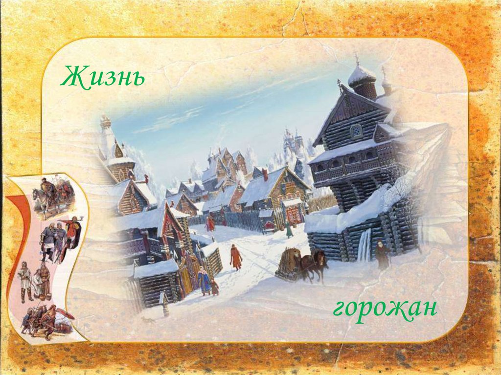Часть населения Руси проживала в городах. В нихселились