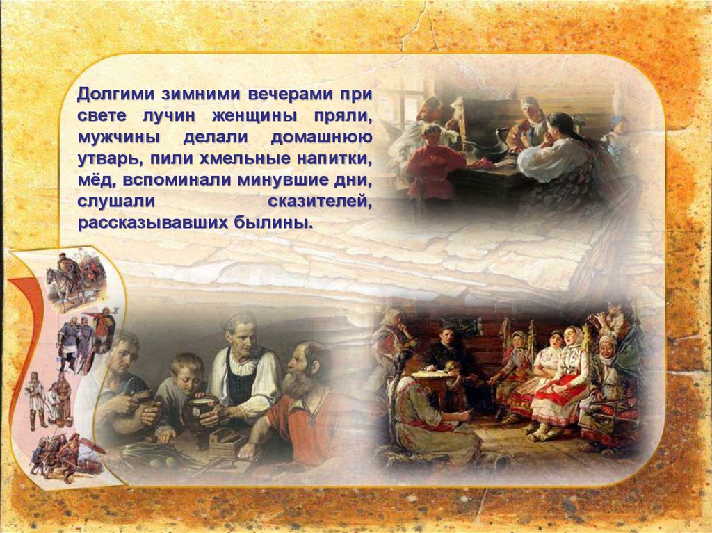Долгими зимними вечерами присвете лучин женщины пряли,