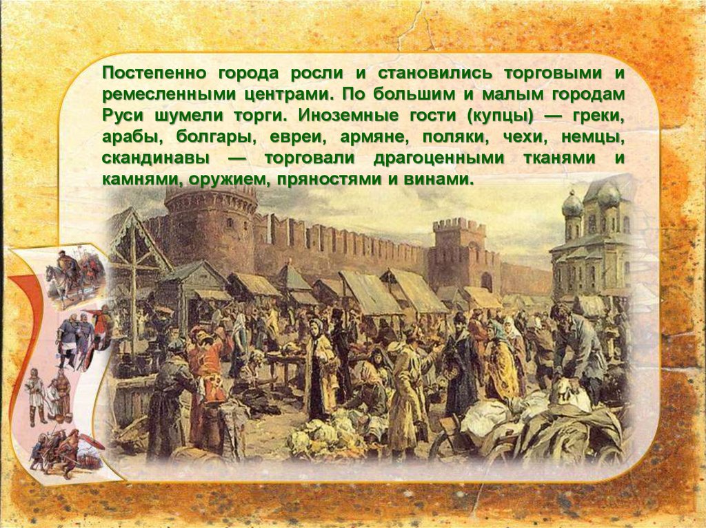 Постепенно города росли и становились торговыми иремесленными центрами. По большим и малым городам