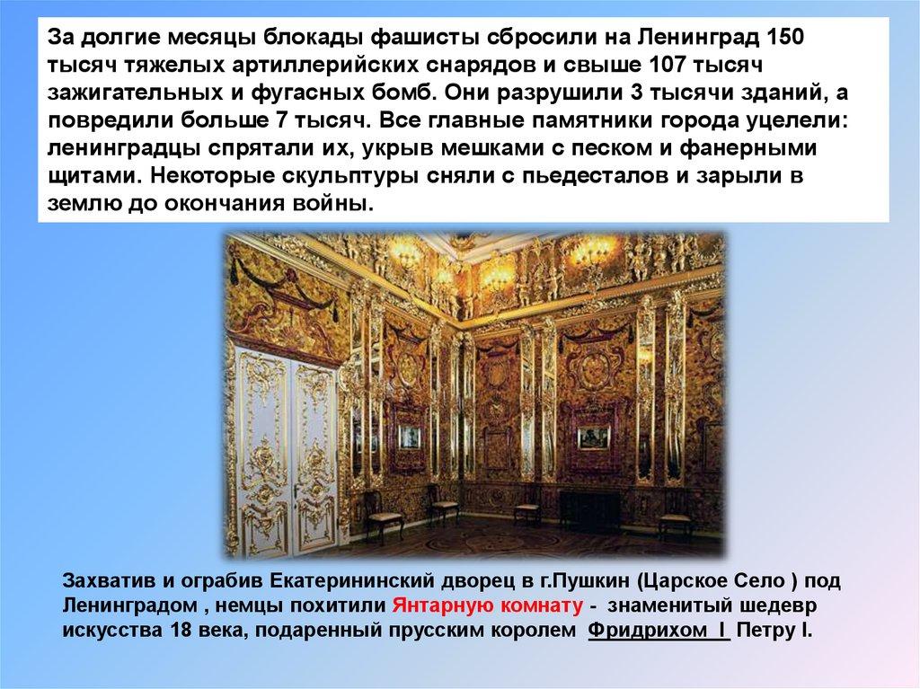 Ленинградом , немцы похитили Янтарную комнату - знаменитый шедевр