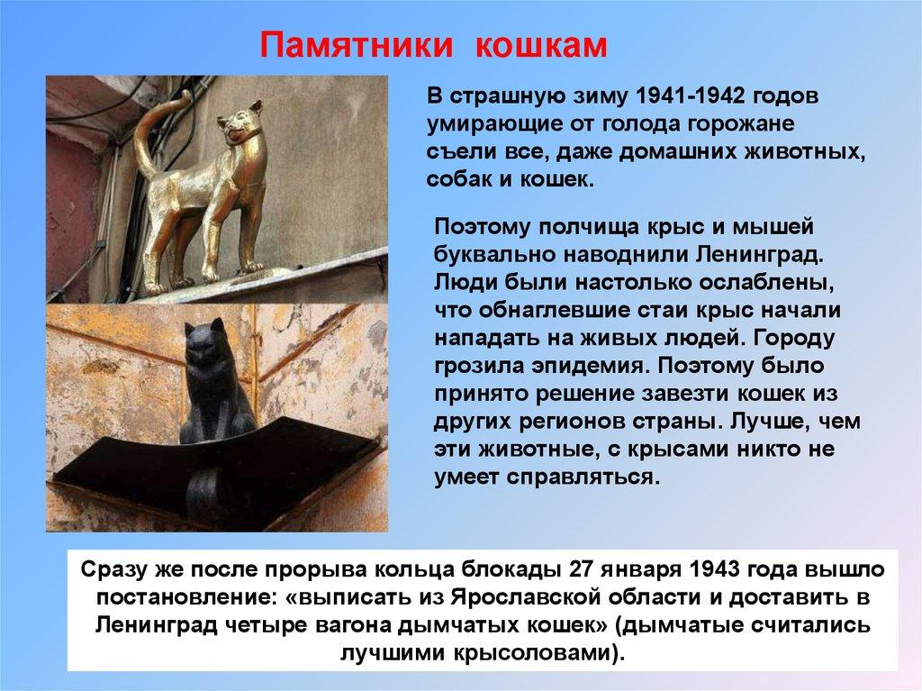 Памятники кошкамВ страшную зиму 1941-1942 годов