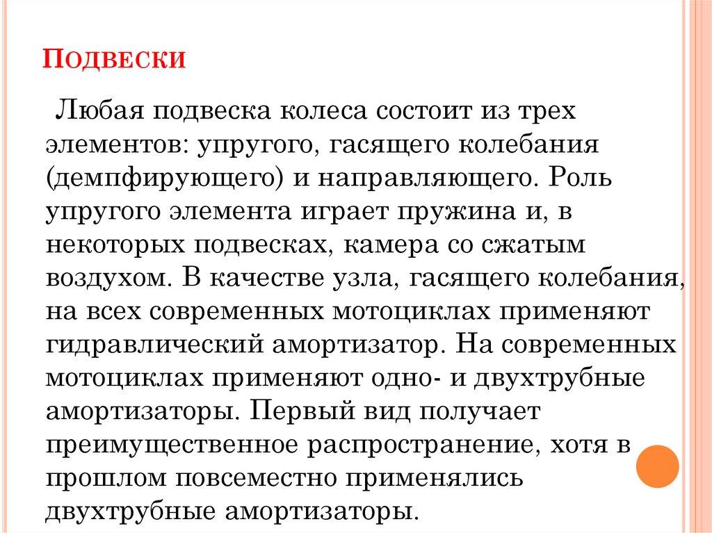 ПОДВЕСКИЛюбая подвеска колеса состоит из трех