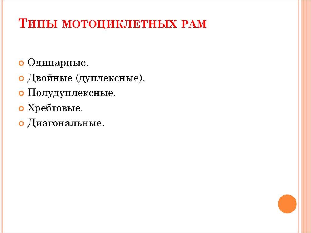 ТИПЫ МОТОЦИКЛЕТНЫХ РАМОдинарные.