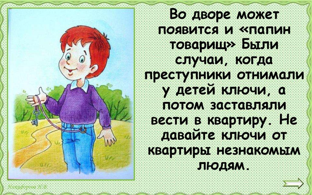 Не заходи в лифт, если в нём незнакомыйтебе человек. А если какой-то незнакомец захочет зайти с тобой в лифт,