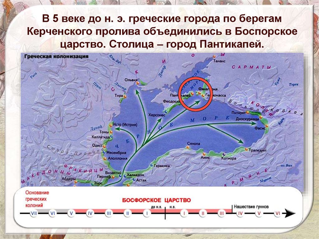 В 5 веке до н. э. греческие города по берегамКерченского пролива объединились в Боспорское