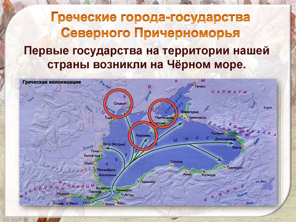 Первые государства на территории нашейстраны возникли на Чёрном море.
