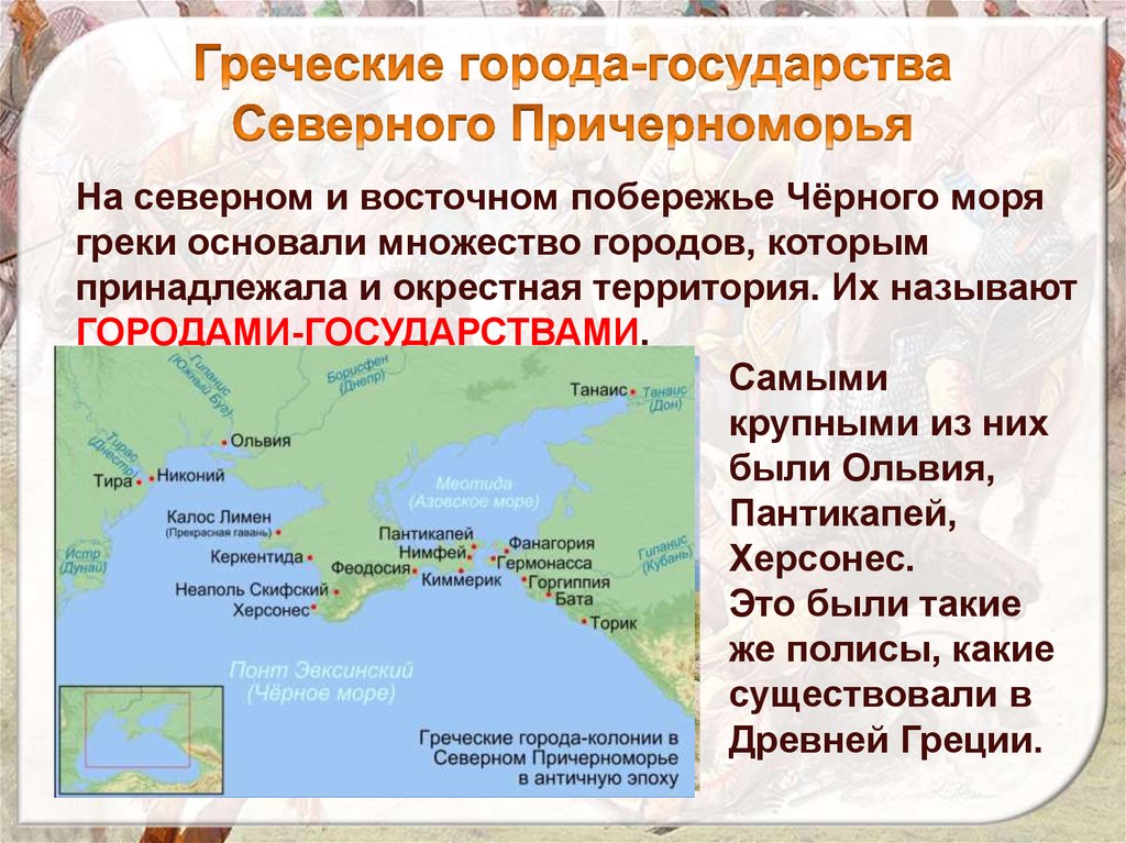 На северном и восточном побережье Чёрного морягреки основали множество городов, которым