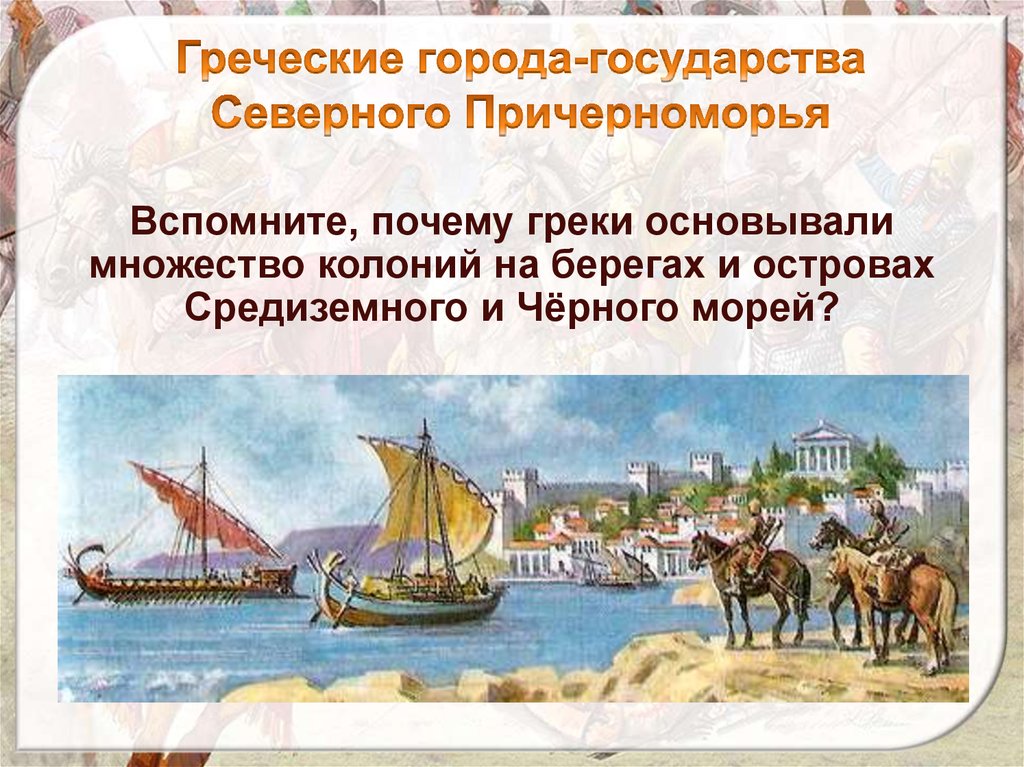 Вспомните, почему греки основывалимножество колоний на берегах и островах