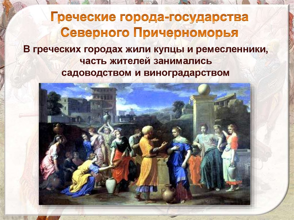 В греческих городах жили купцы и ремесленники,часть жителей занимались