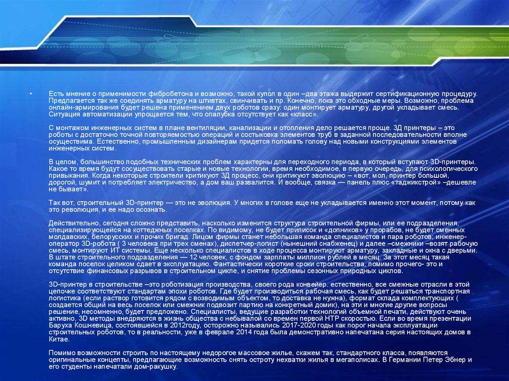 3D-принтер в строительстве –это роботизация производства, своего рода конвейер. естественно, все смежные отрасли в этой