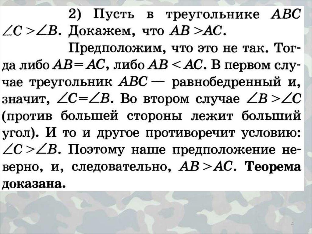 стороны, а это противоречит условию (тому, что данные углы равны). Итак, в