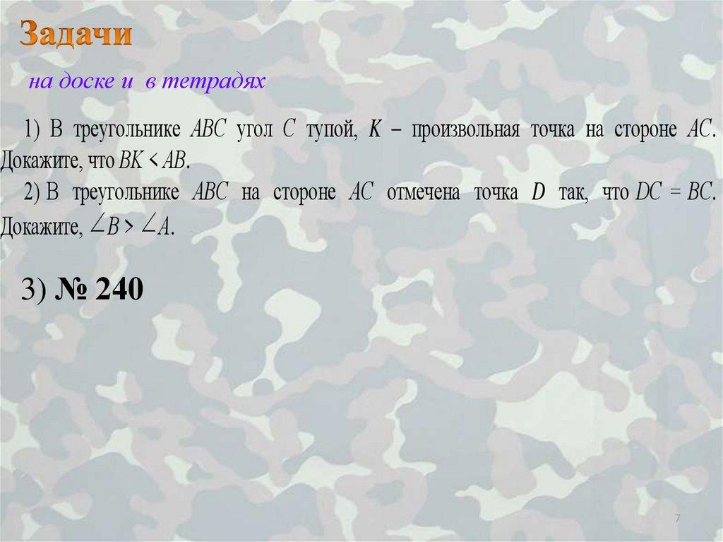 на доске и в тетрадях1) В треугольнике АВС угол С тупой, K – произвольная точка на стороне АС.