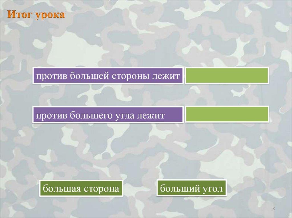 1) против большей стороны лежит