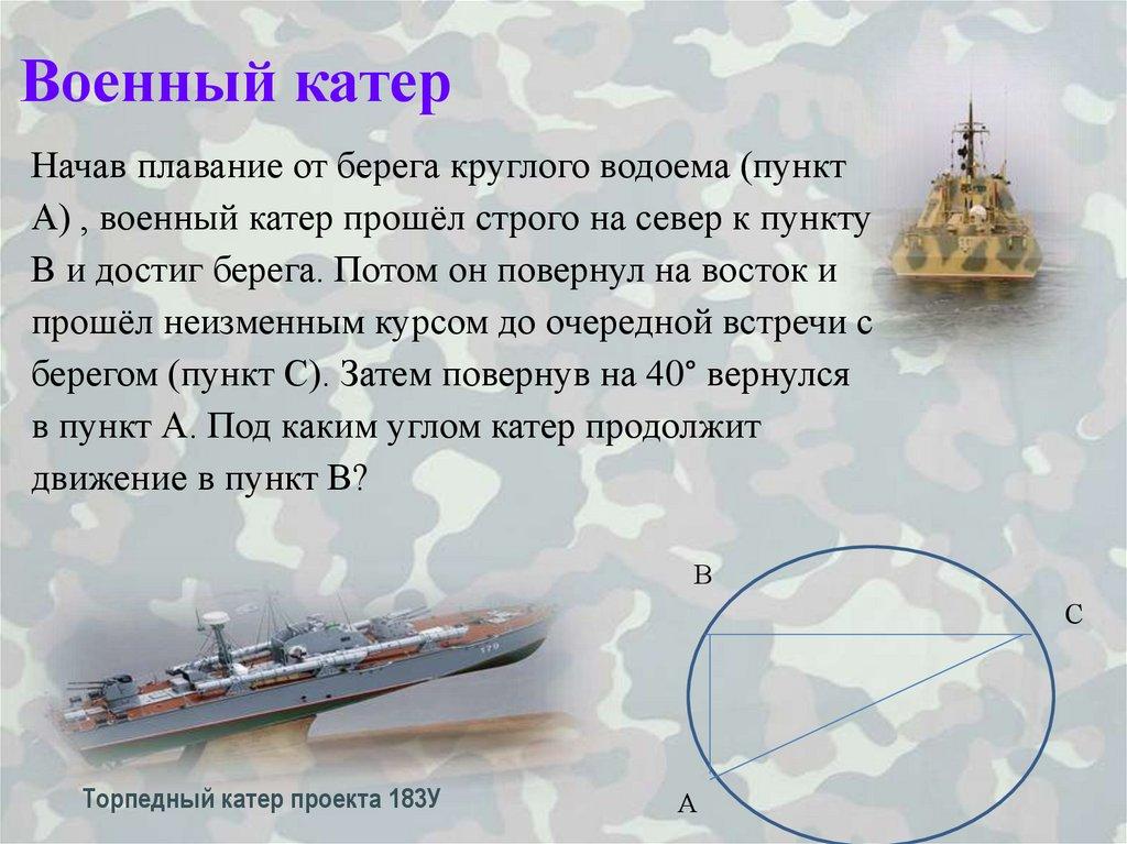 А) , военный катер прошёл строго на север к пункту