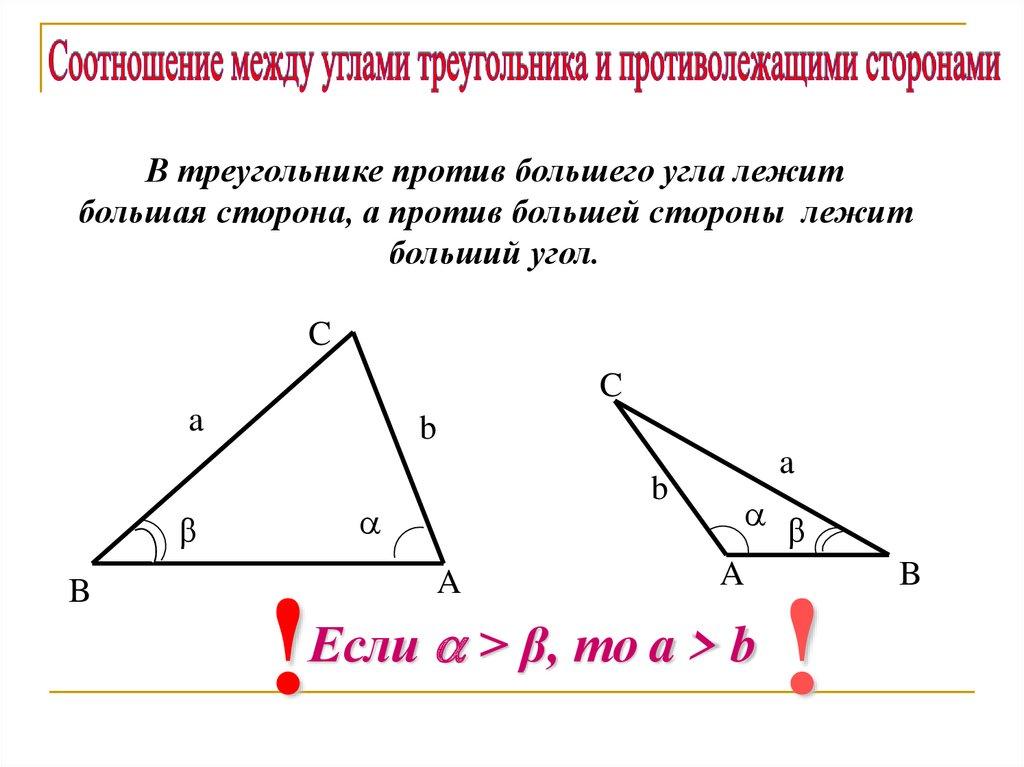 Соотношения между сторонами и углами в треугольнике.