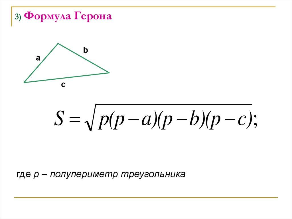 б) синус угла между равными сторонами;