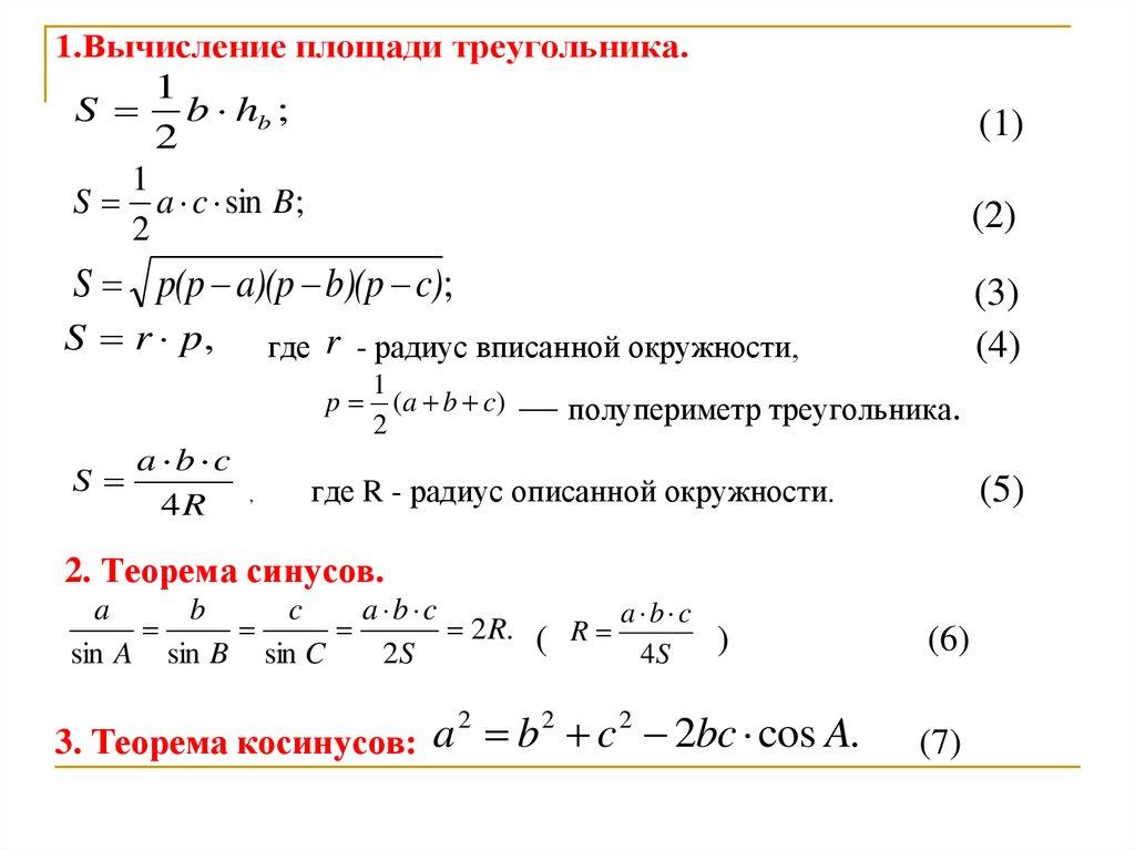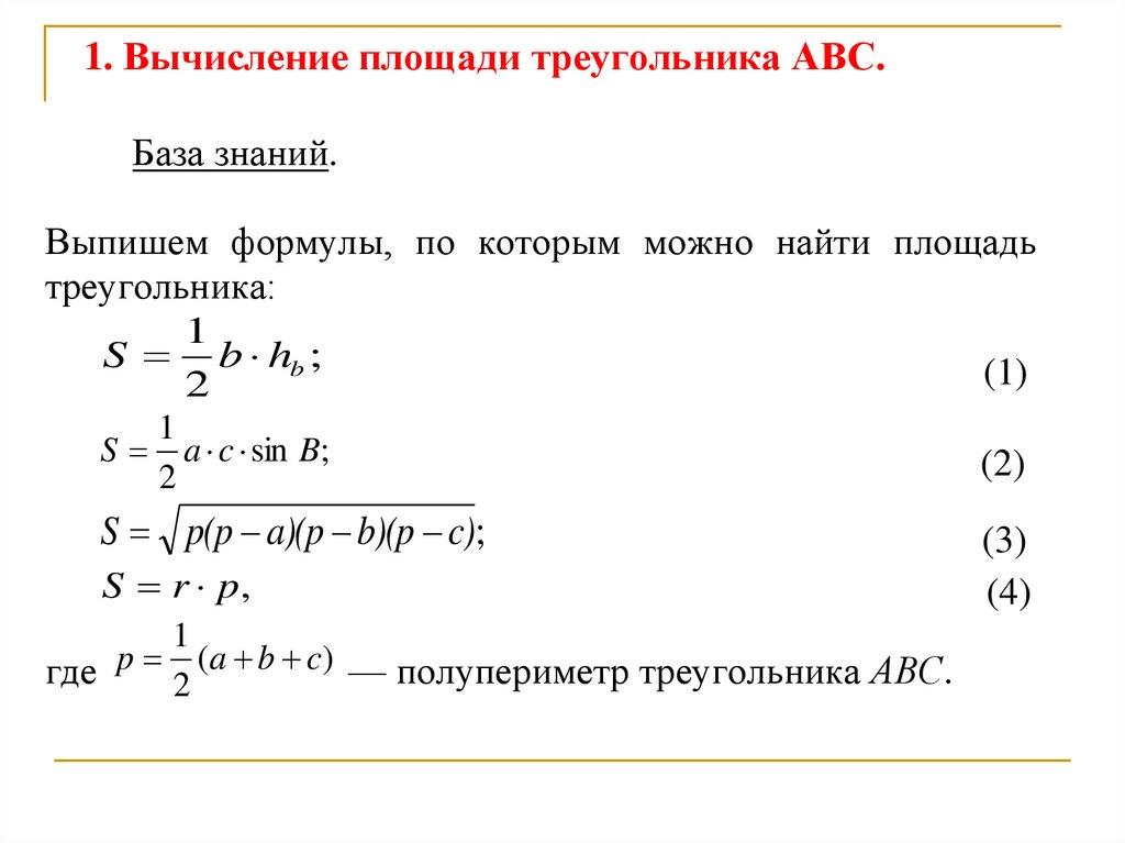 1.Вычисление площади треугольника.1