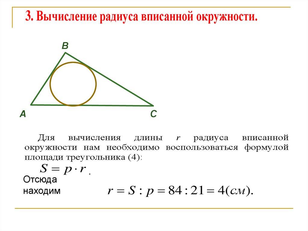 где r - радиус вписанной окружности,